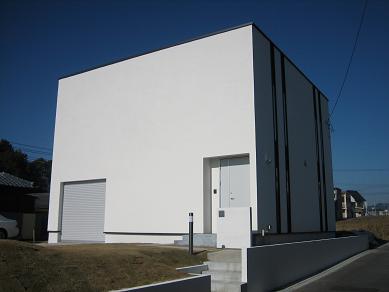四角いシンプルなカタチのなかに、上品な質感を感じさせる家。